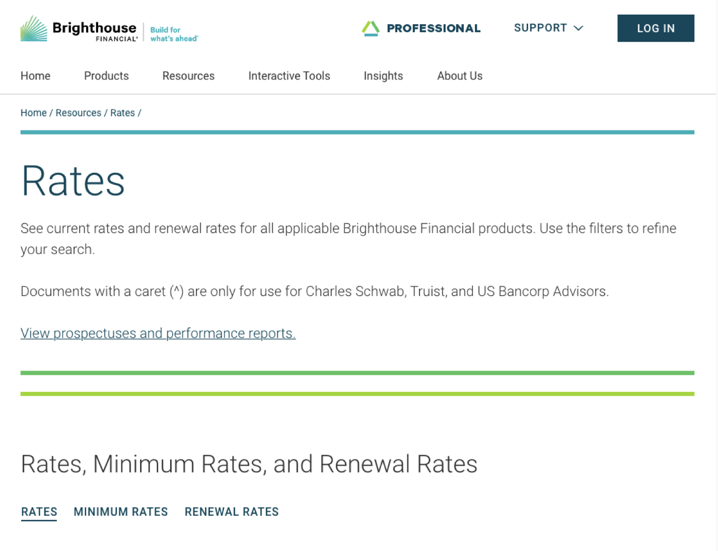 Pictured: A quick glance at the Brighthouse Financial PRO Rates experience